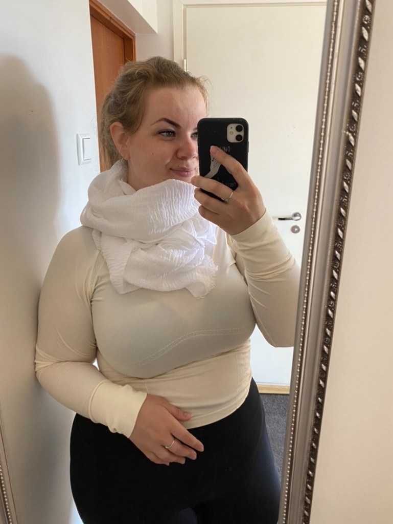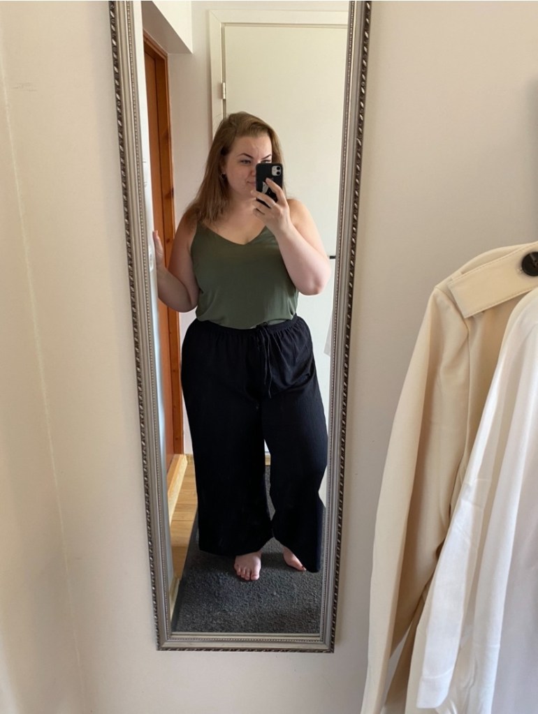 Let it be said here that I just didn’t like the texture of the fabric (unfortunately, I didn’t take a closer picture and returned the pants), but I saw a girl in town wearing them and they were very nice 😊.