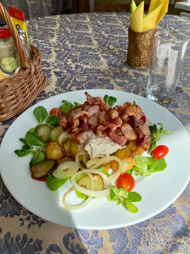 đł Viljandi Legend got delicious meat with fresh side dishes and Herr Artur offered a nice bachelor lunch đ¤¤.