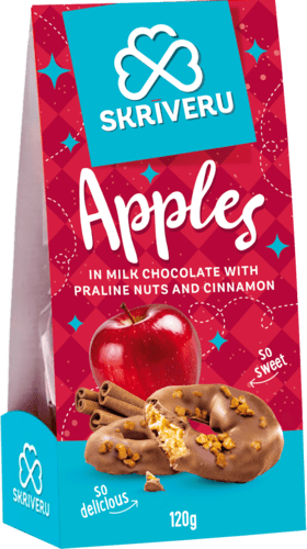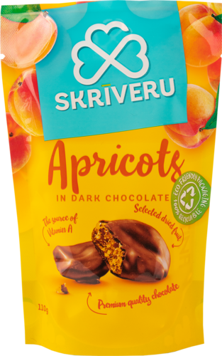 Latvian companySkrīveru’s chocolate-covered apricots, cherries, plums, and apples.